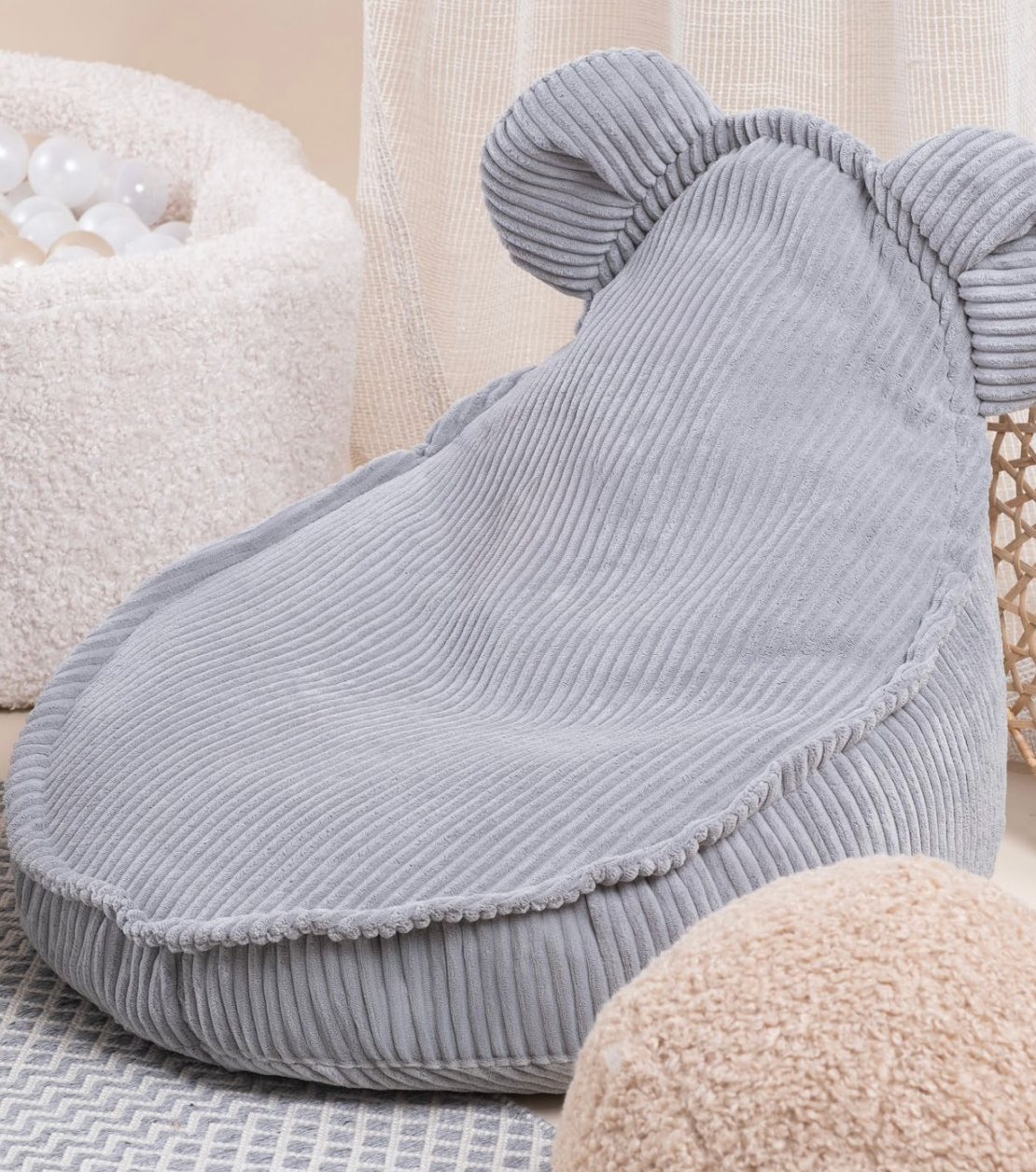 Huggy Bear -säkkituoli tuo lapsen huoneeseen pehmeyttä, mukavuutta ja ripauksen leikkisyyttä. Suloiset korvat tekevät siitä heti lapsen suosikin ja kutsuvat sekä rentoutumaan että leikkimään. Tuoli on valmistettu pehmeästä, ihoa hellivästä kankaasta, joka on miellyttävä ja kestävä käytössä.