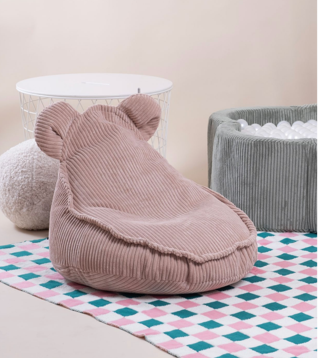Huggy Bear -säkkituoli tuo lapsen huoneeseen pehmeyttä, mukavuutta ja ripauksen leikkisyyttä. Suloiset korvat tekevät siitä heti lapsen suosikin ja kutsuvat sekä rentoutumaan että leikkimään. Tuoli on valmistettu pehmeästä, ihoa hellivästä kankaasta, joka on miellyttävä ja kestävä käytössä.